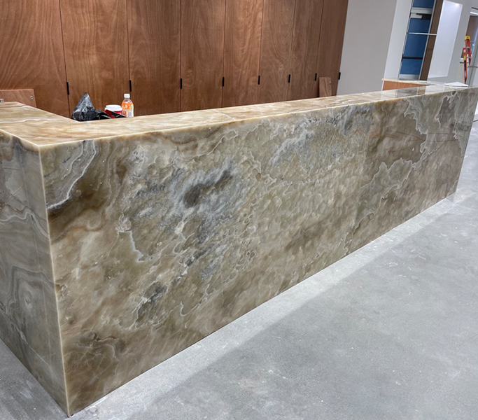 Impress your clients with a stunning granite reception desk. Our custom designs and expert installation will enhance the look of your office, creating a professional and welcoming atmosphere.