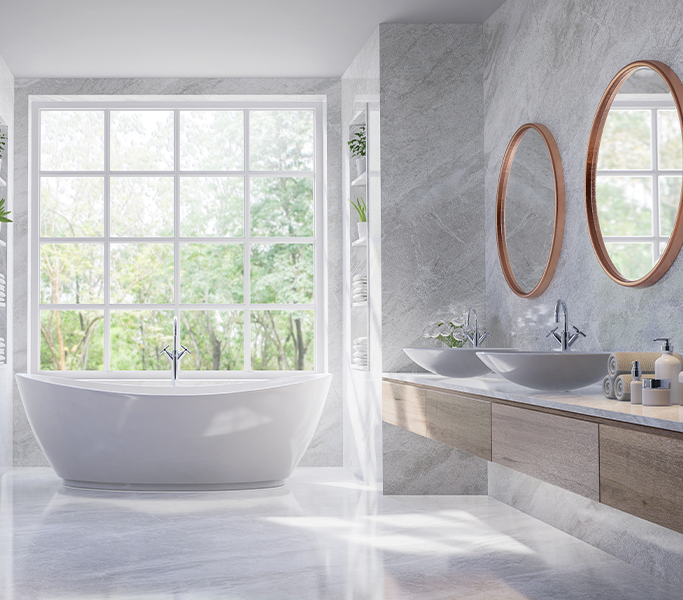 Transform your bathroom with our custom granite vanity tops. Enjoy a luxurious and functional space with expertly installed granite that enhances your bathroom's design.